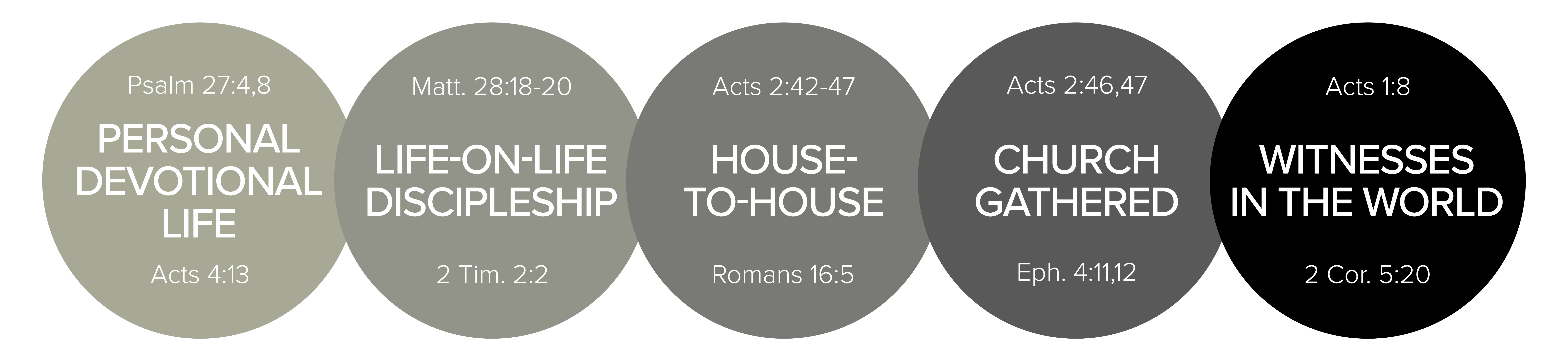 5 Circles of Church The 5 Circles of Church are meant to clarify where each person’s relationship with Jesus can be expressed across the breadth of church. Recommended Resource 5 Circles of Church graphic Download